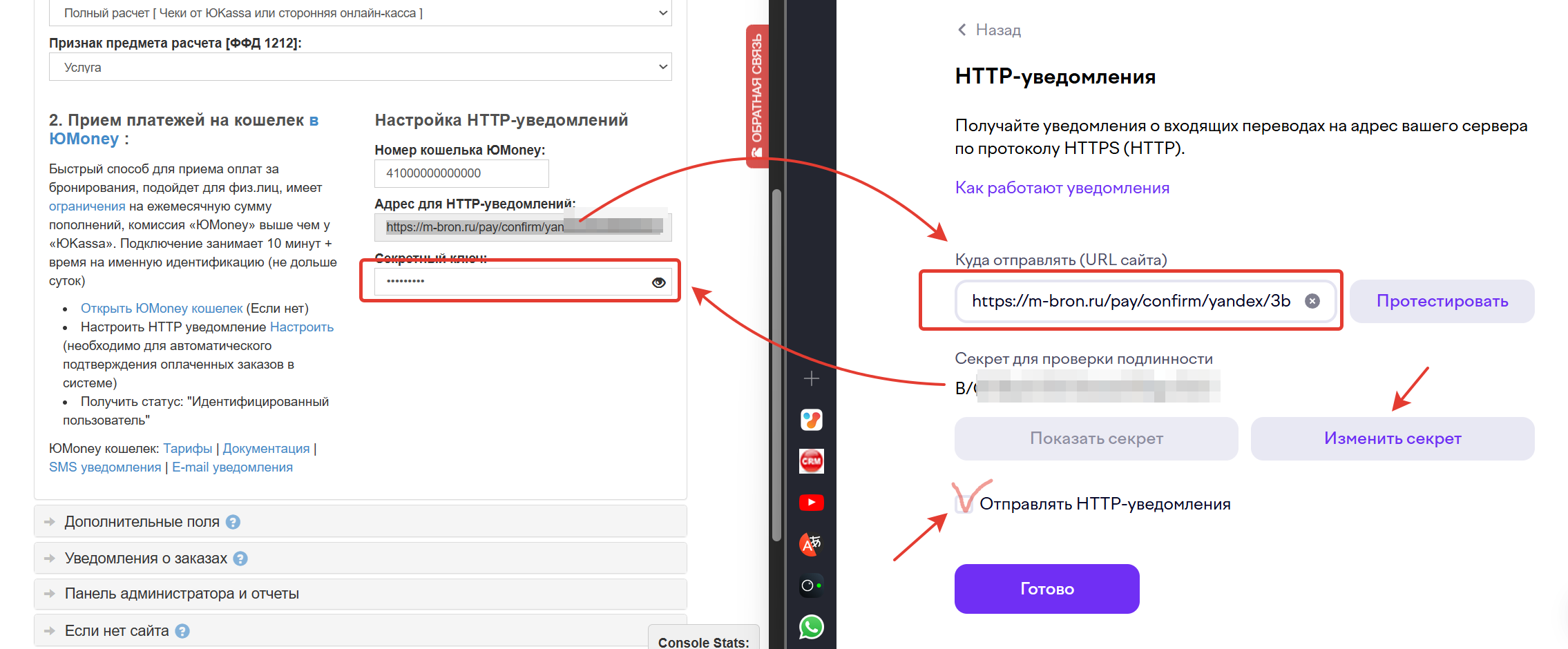 3. Настроить HTTP уведомление (необходимо для автоматического подтверждения оплаченных заказов в системе)